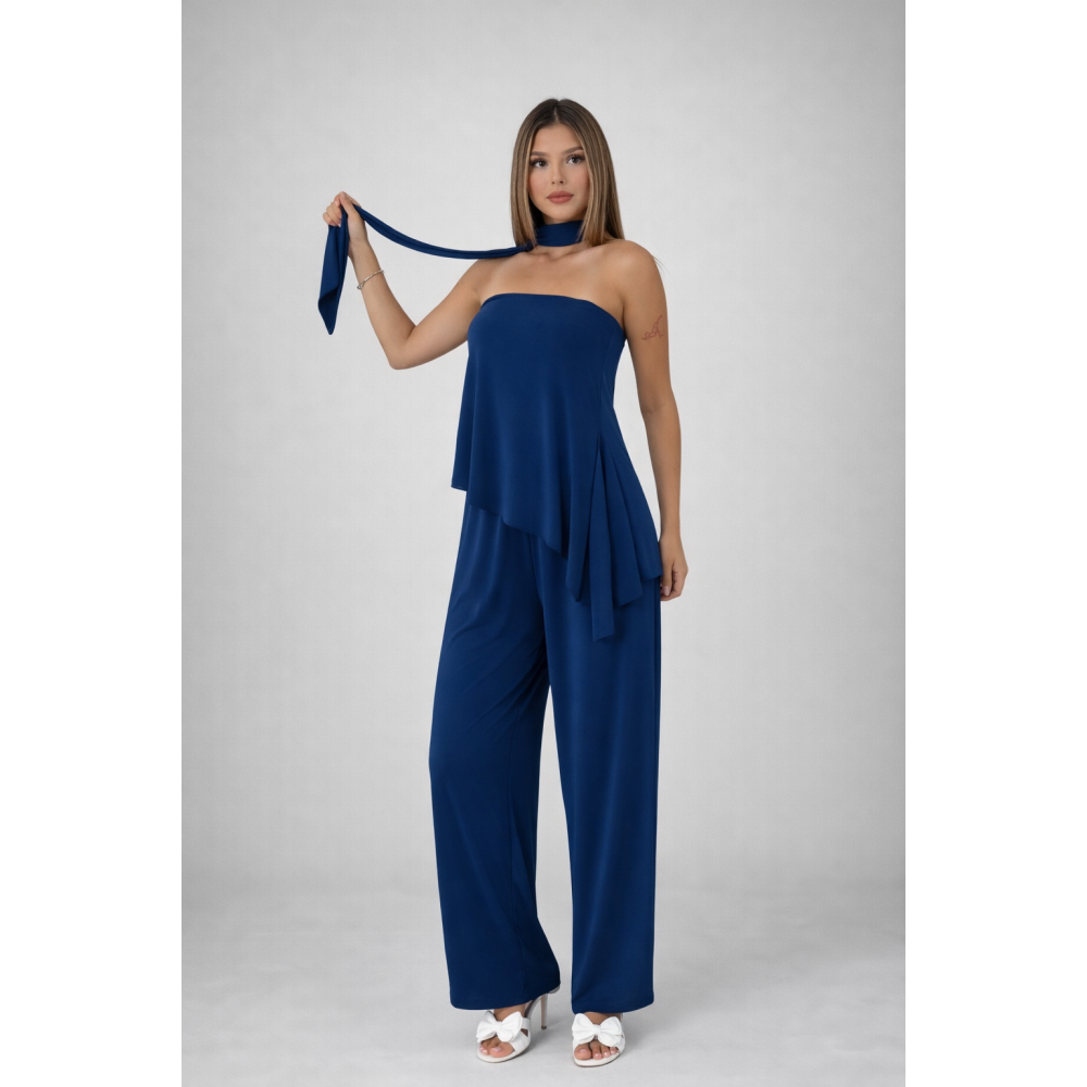 Asimetrik Yaka, Askılı, Şifon Detaylı Mavi Elbise / Tulum 251025114208