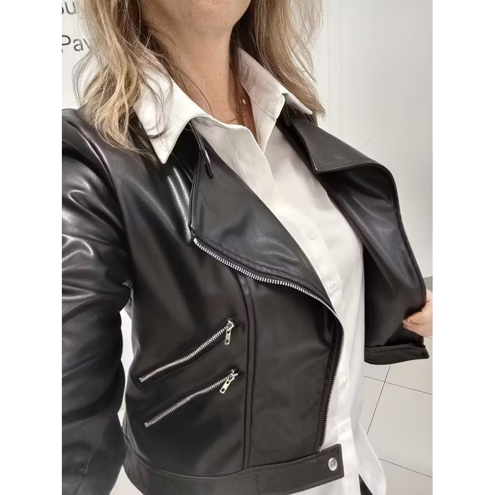 Fermuar Kapanışlı Beyaz Şık Motosiklet Ceketi…
