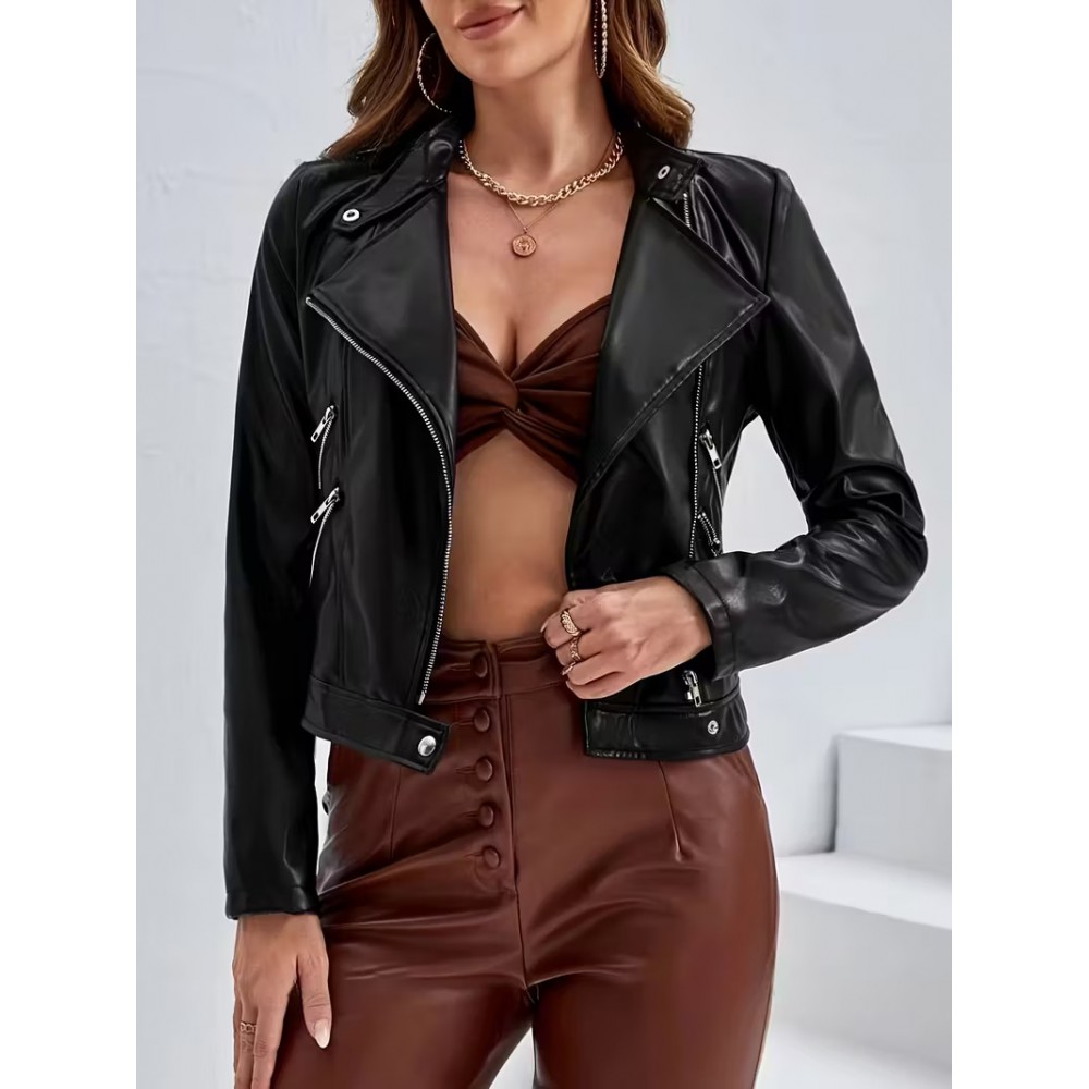Fermuar Kapanışlı Kahverengi Şık Motosiklet Ceketi…
