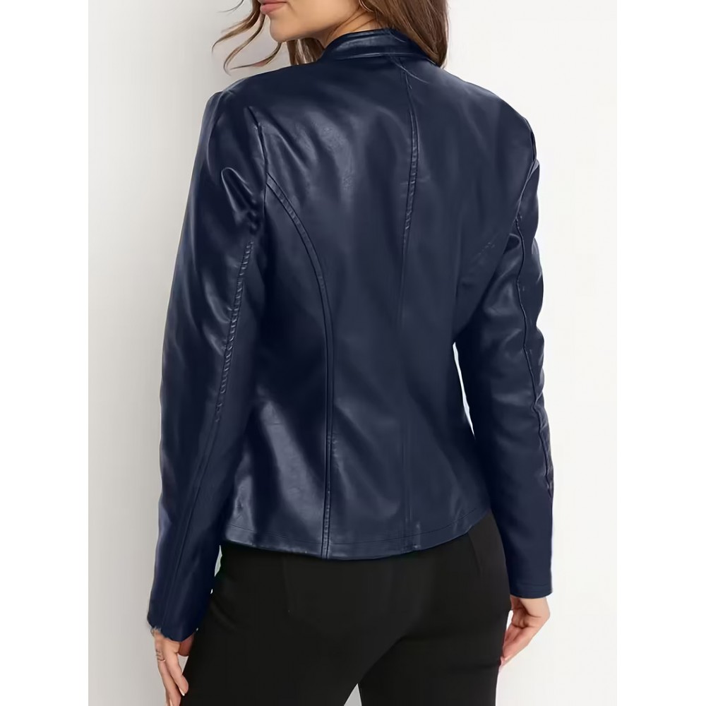 Deri Ceket - Lacivert Tam Fermuarlı Uzun Kollu Motosiklet Montu 251014115936