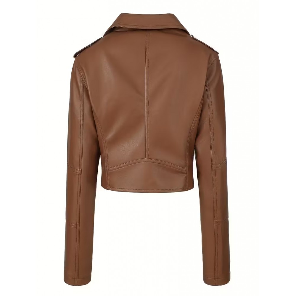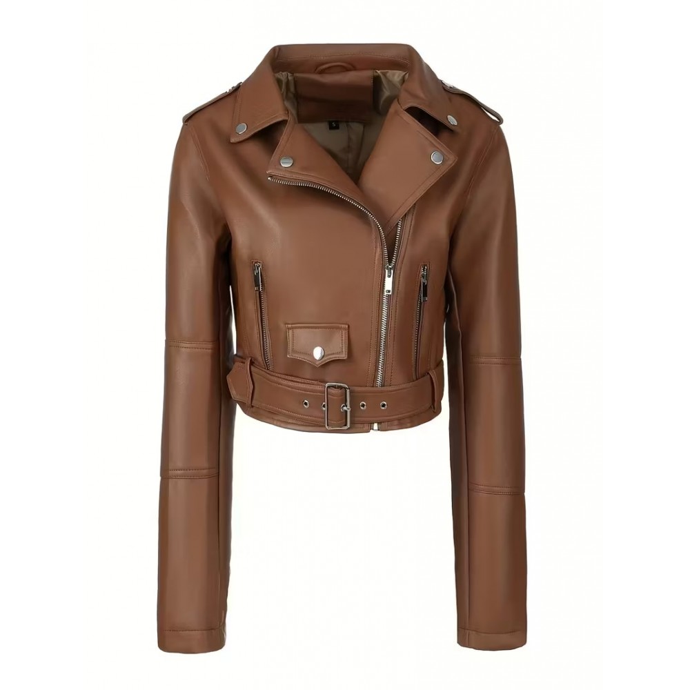 Fermuar Kapanışlı Kahverengi Şık Motosiklet Ceketi 251014125918