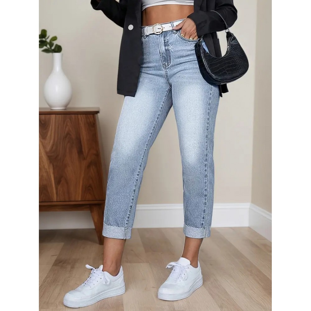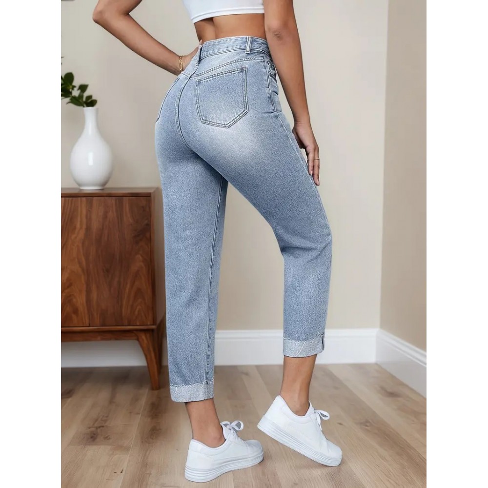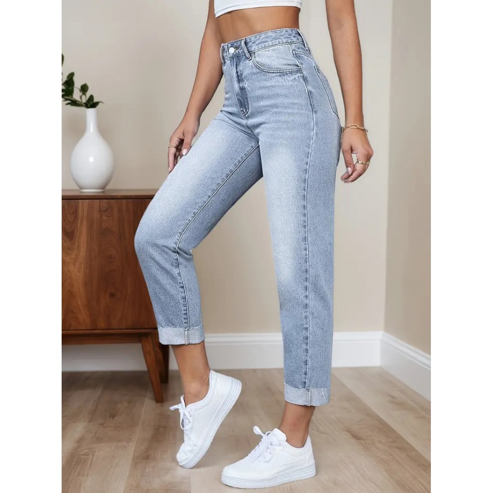 İç Göstermeyen, Orta Yükseklikte, Her Mevsim Giyilebilir ve Günlük/Resmi Kombinler İçin Esnek Pantolon - Kadınlar İçin Şık Jeanlar