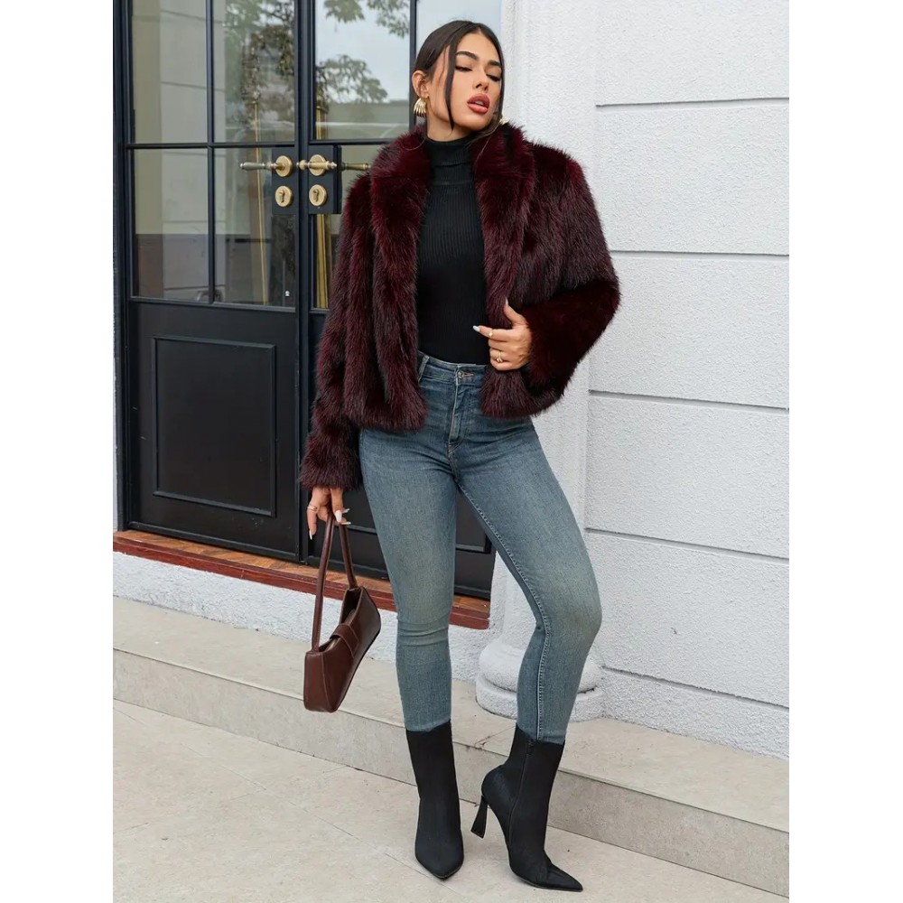 Koyu Kırmızı Suni Kürk Ceket 251023112452